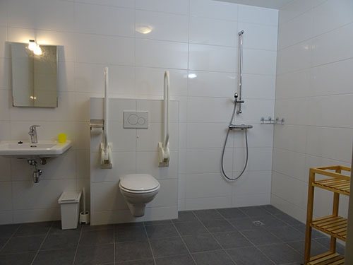 De Stal biedt twee ruime en moderne badkamers. De badkamer op de benedenverdieping is aanpast aan de wensen en behoeften van mindervaliden. De badkamer op de bovenverdieping beschikt over een ligbad en aparte douche.