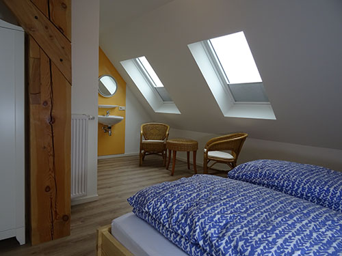 Er zijn drie 2-persoonsslaapkamers, waarvan één op de benedenverdieping. Deze kamer heeft een televisie. Op de bovenverdieping zijn nog eens twee slaapkamers te vinden, waarvan één met televisie en de ander met vaste wastafel. Alle slaapkamers beschikken over comfortabele bedden met aparte matrassen en dekbedden en voldoende kastruimte.