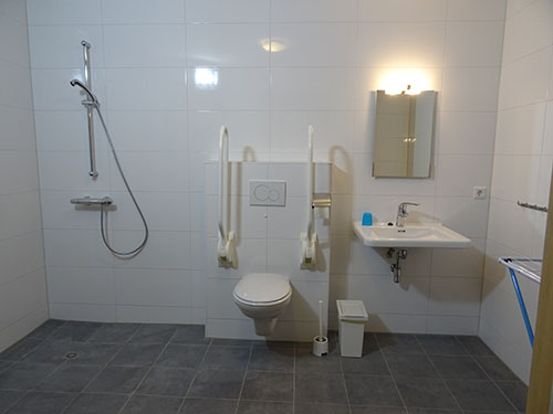 Vakantiewoning De Dors biedt twee ruime en moderne badkamers. De badkamer op de benedenverdieping is aanpast aan de wensen en behoeften van mindervaliden. De badkamer op de bovenverdieping beschikt over een ligbad en aparte douche.