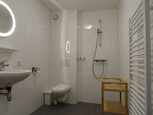 De woonkamer met luxe, open keuken beschikt over vloerverwarming en is gezellig ingericht. U treft hier een comfortabele zithoek en eethoek. Via openslaande deuren bereikt u het heerlijke terras. Op de begane grond is een separaat toilet .